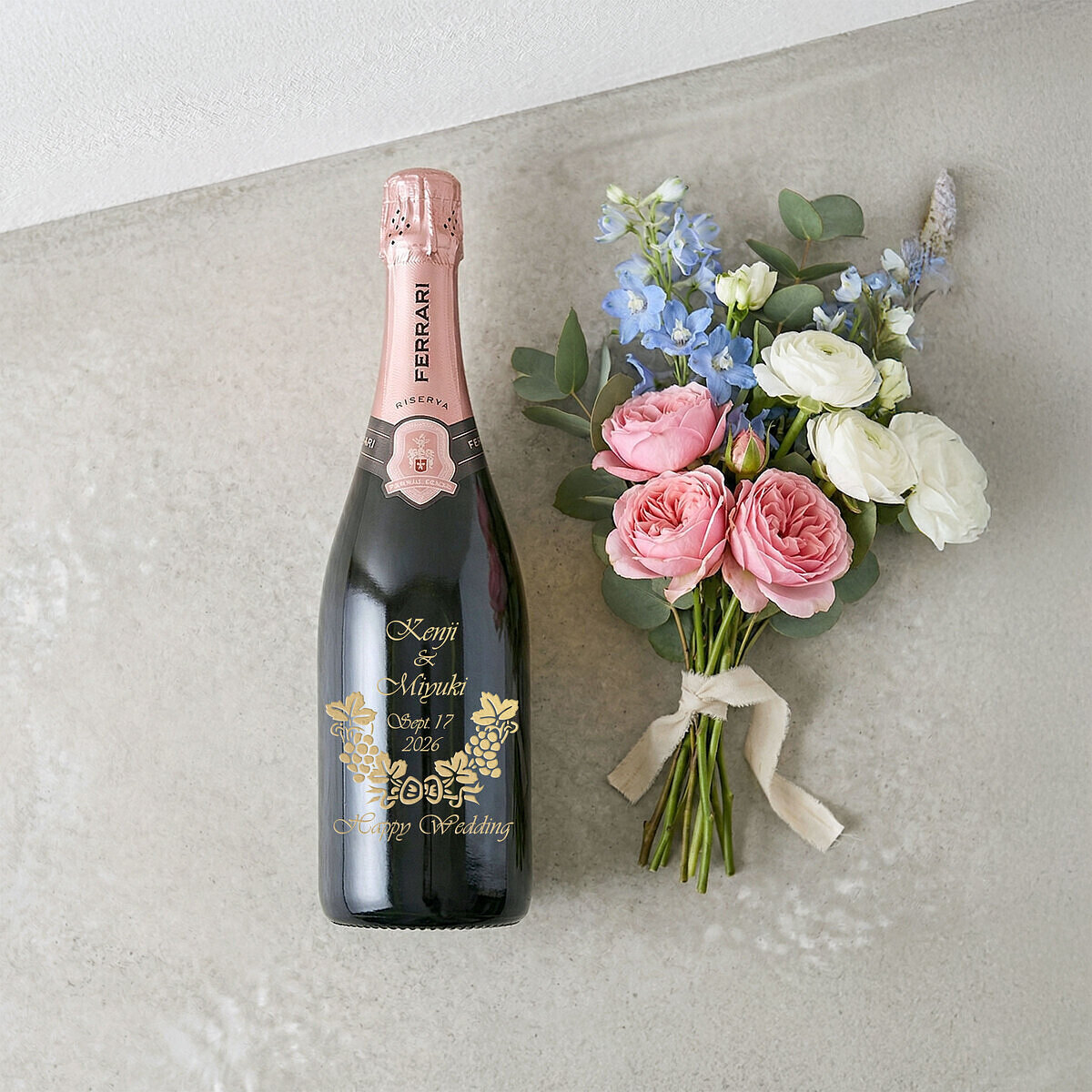 パーソナルメッセージが掘ってあるワインボトルをまじまじと眺めて、感慨深そうにしていらっしゃいました。