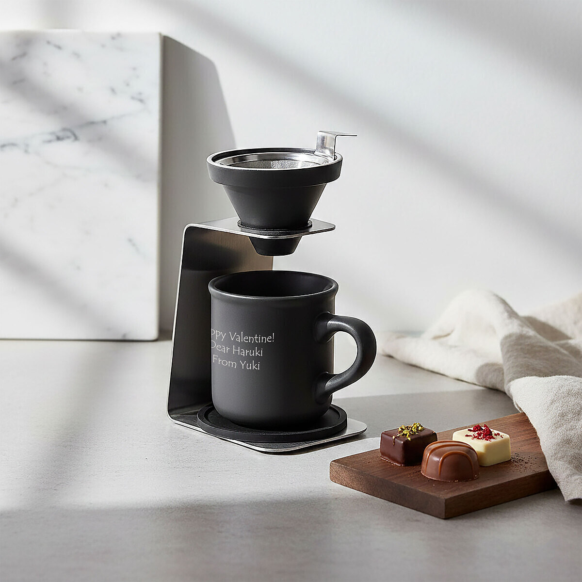 自分のタイミングで、自分の好きなコーヒーを淹れる。気分転換にもなる至福の時間。家族からの感謝のメッセージやお名前が入ったマグカップなら、美味しさも倍増しますね。