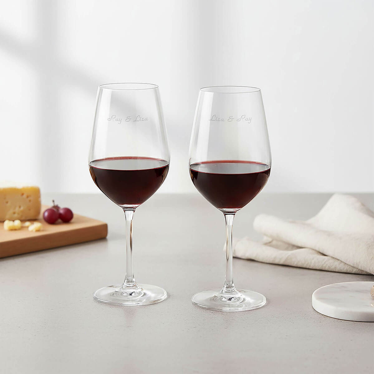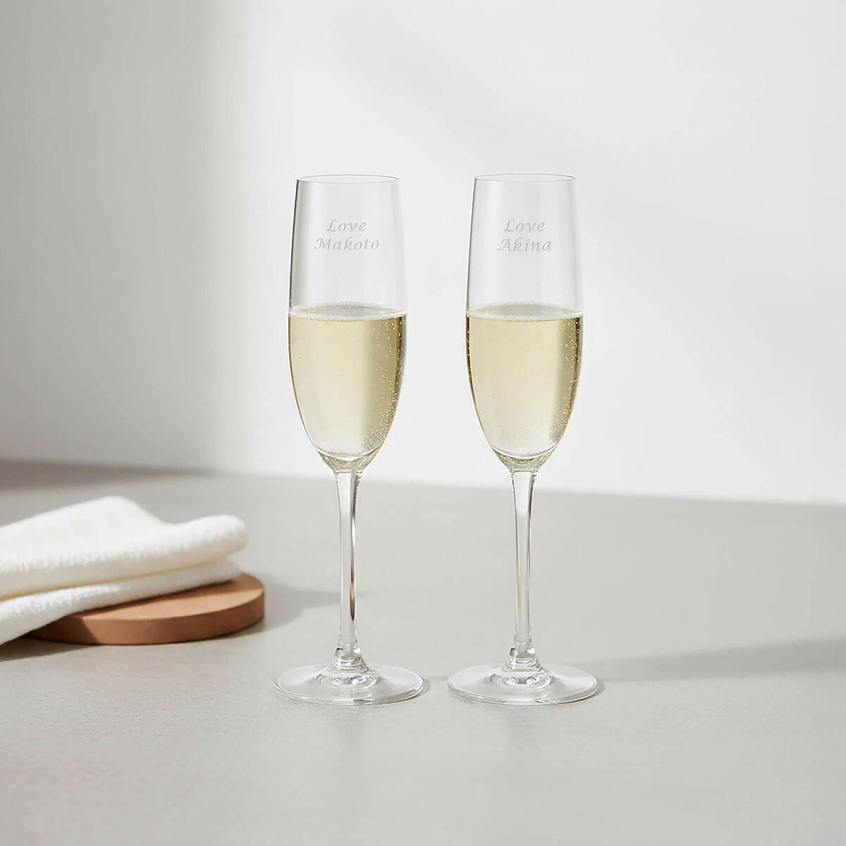 ご夫婦への贈り物に。恋人とペアで。二人の名前をそれぞれに入れて、結婚祝いや両親へのプレゼントに贈りやすいグラス2客のセットです。