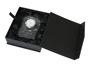 記念品やインセンティブ, 表彰などいろいろな場面で使える定番のペーパーウェイト。美しいガラスに彫り込まれたメッセージが記念の時を輝かせます。ちょっとデスクに飾っても邪魔にならない小ぶりなサイズ、贈りやすい一品です。