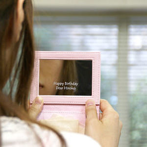 好きな言葉や、勇気づけられる言葉、アツーイ愛のメッセージなど、鏡をみている顔はいつも笑顔になっちゃう。落ち込んだときや、ココゾという時にはパッと開いてパワーアップ!!そんな特別なコンパクトミラーをオーダーメイドして入学祝いにいかが?