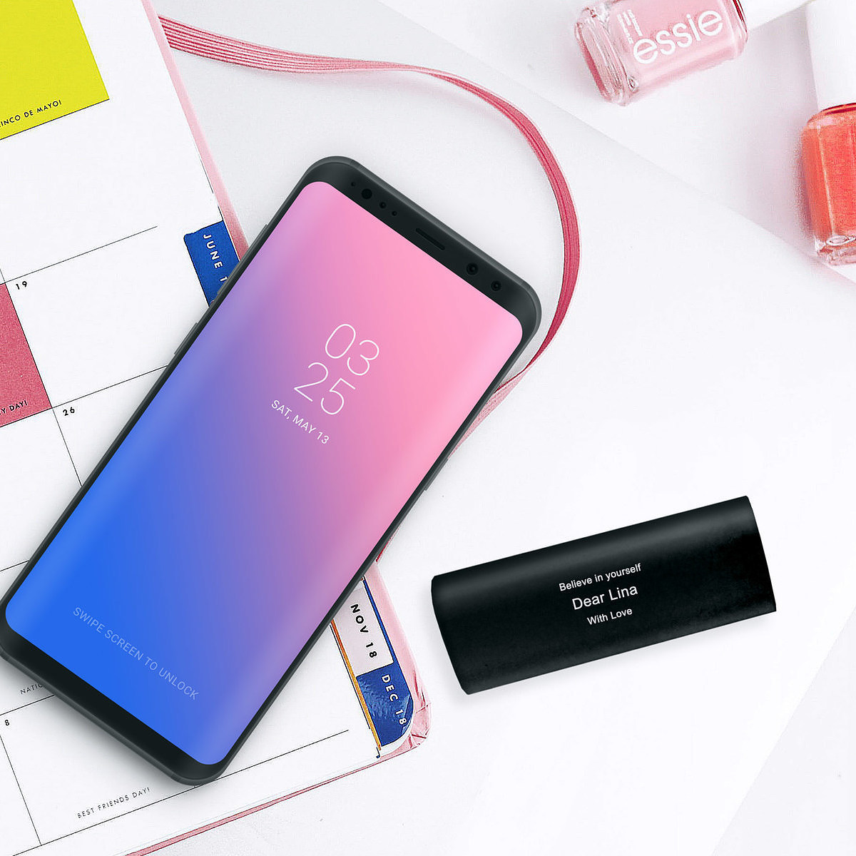 外出先での充電切れを救ってくれる便利なモバイルバッテリー。常にカバンに携帯したいものですよね。そんな予備バッテリーにはいつもそばに持っていて欲しいメッセージを入れてプレゼント。充電する機器と一緒に、あの人のハートも充電してあげられます。