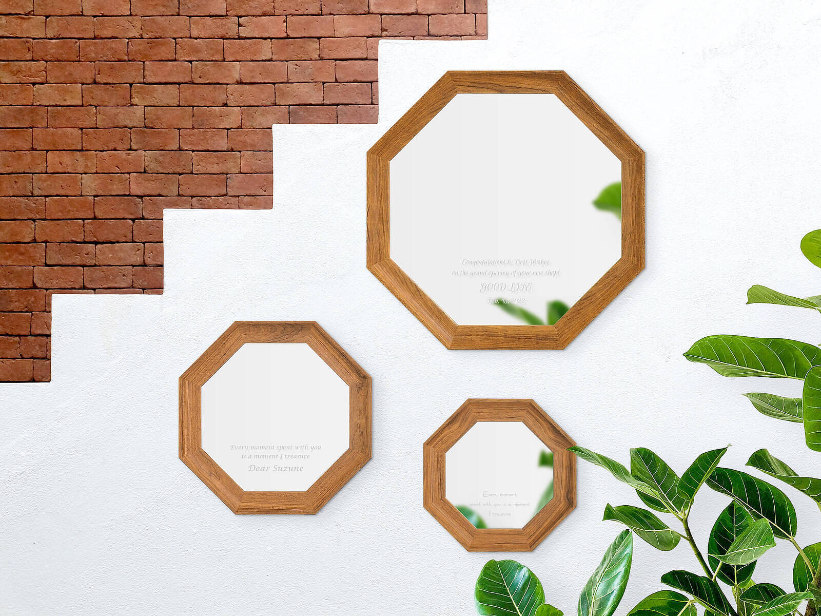 八角形の鏡は幸運を呼び込む縁起物でお祝い品に人気です。