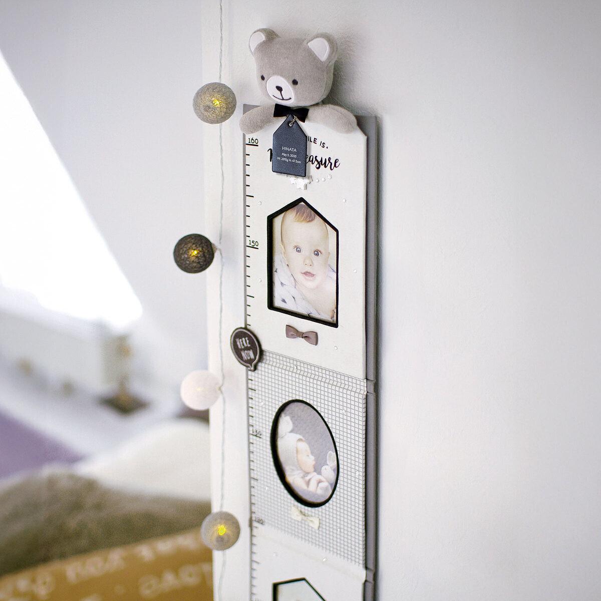 1歳のお誕生日が近づく頃には自力で立ち上がることが出来る子が多く、そろそろ身長計での計測が可能となります。生まれたときはあんなに小さかったのに…。そう、子供はあっという間に成長してきます。身長計付きのフォトフレームなら「このくらいの身長の時はこんな風だった」と後から振り返ることが出来ます。